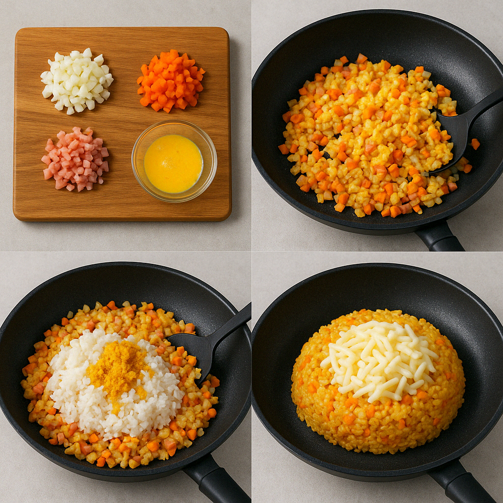 📌 부드러운 카레 풍미에 고소한 치즈가 올라간 볶음밥!