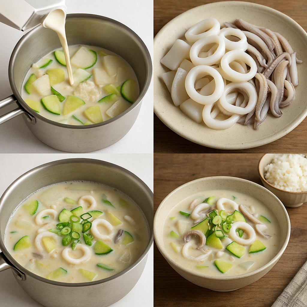 - 오징어는 너무 오래 끓이면 질겨지니 타이밍 조절 중요!