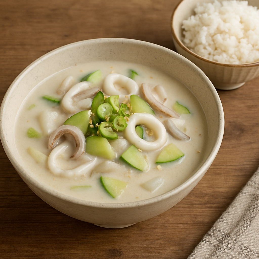 담백한 두유 국물에 오징어의 감칠맛이 녹아들면,